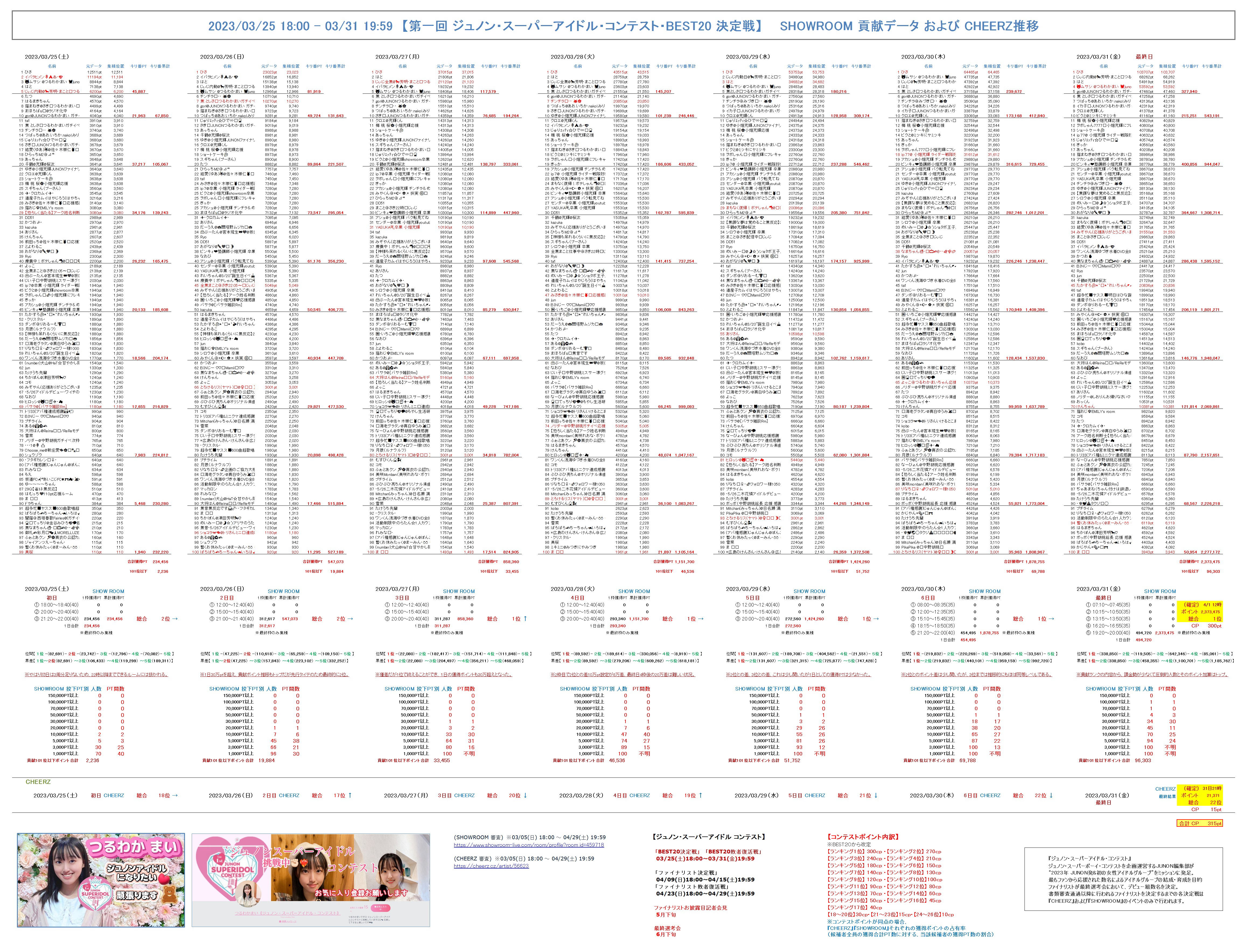 獲得ポイント実数・推移 データ(SHOWROOM・CHEERZ)