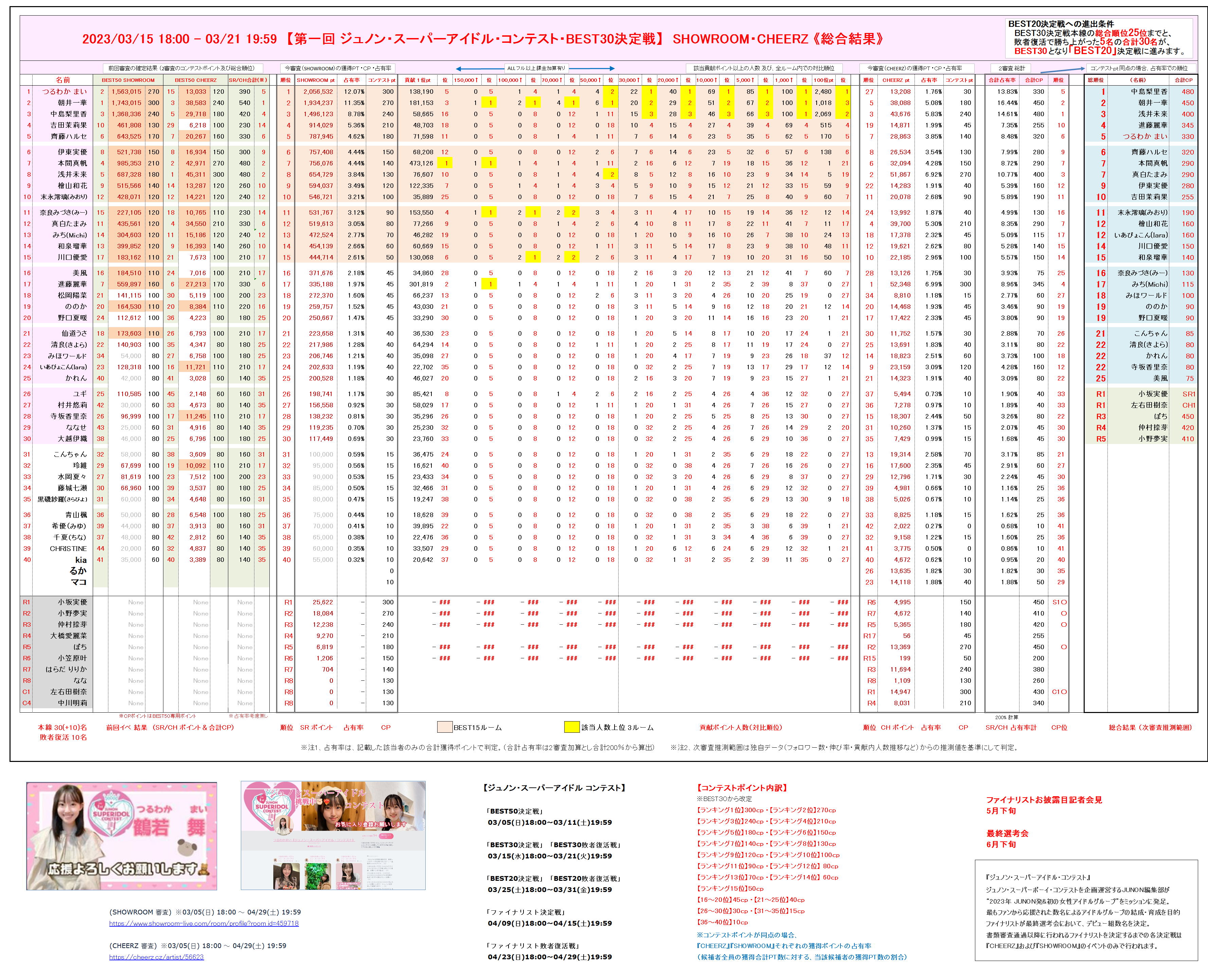 (SHOWROOM・CHEERZ 両審査のポイント占有率及び、コンテストポイント順位)