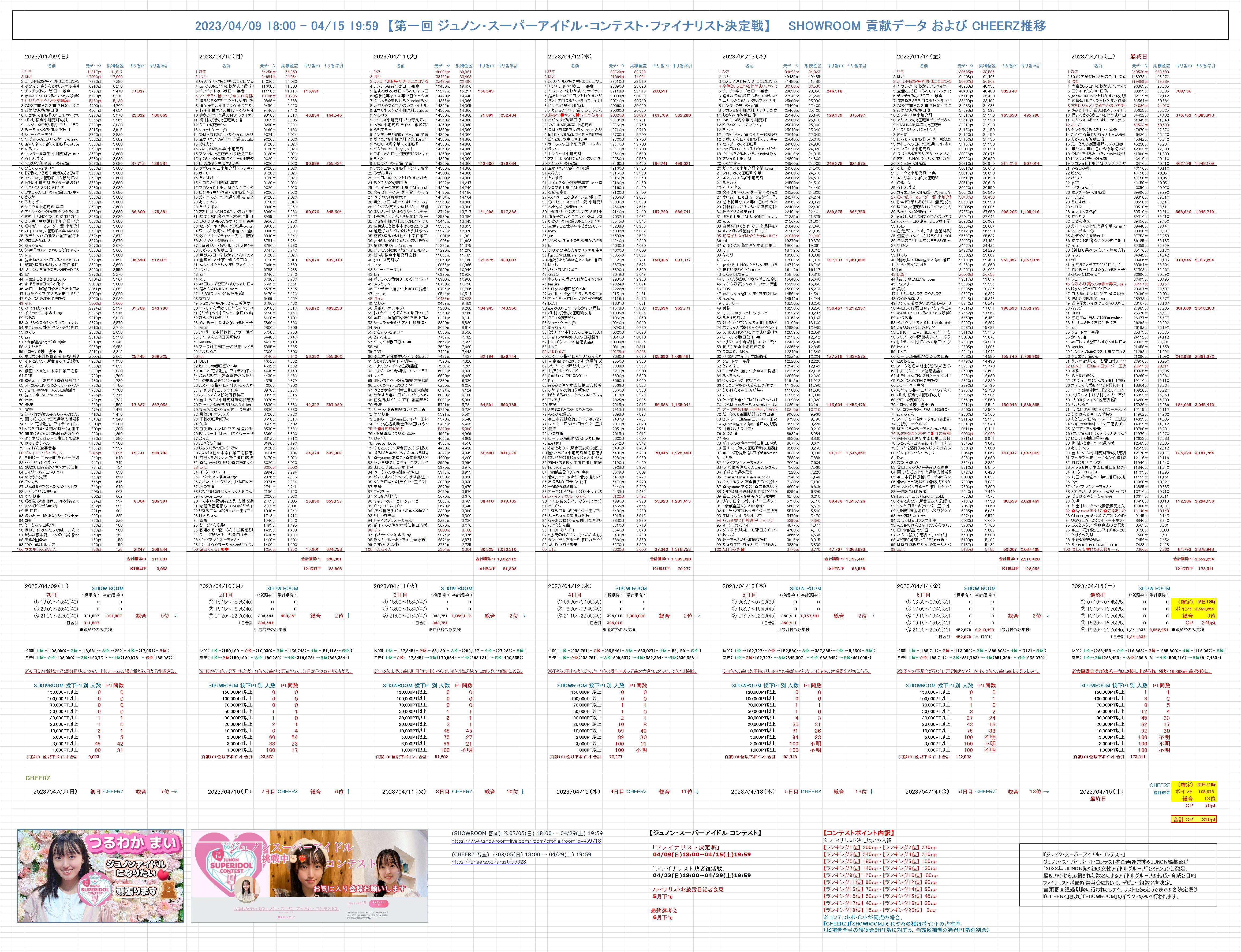 獲得ポイント実数・推移 データ(SHOWROOM・CHEERZ)